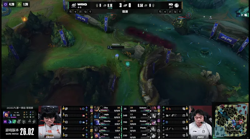虎扑02月06日讯 GAME1:WBG蓝色方;IG红色方